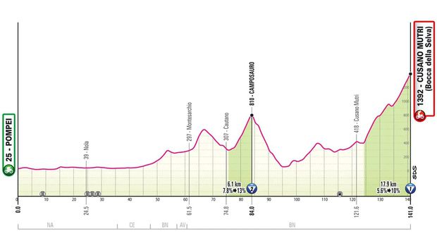 14/05 – Etapa 10: Pompeia – Cusano Mutri, Bocca della Selva (141 km)