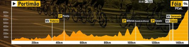 Na quinta-feira, a estrada inclina-se a sério. A Fóia surge como primeiro grande teste para os homens da geral, no final de 147,2 quilómetros com partida em Portimão. Pelo caminho, o pelotão enfrenta a Picota e o Alferce, além de uma contagem de terceira categoria em Casais.
