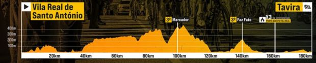 Os sprinters terão nova oportunidade na tirada seguinte, que liga Albufeira a Lagos ao longo de 175,1 quilómetros, incluindo uma primeira passagem pela meta a 32,7 quilómetros do final.