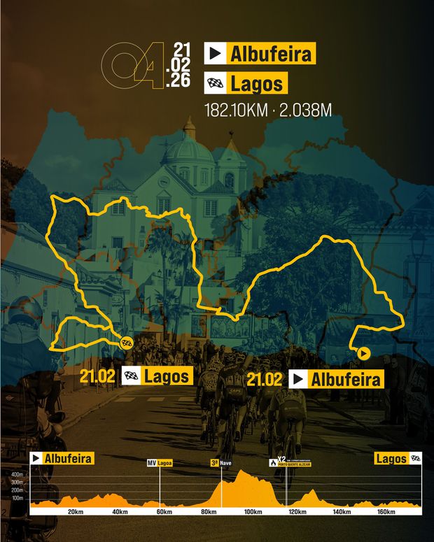 A quarta etapa liga Albufeira a Lagos, numa distância de 182,10 quilómetros, incluindo um circuito final de 32 quilómetros.