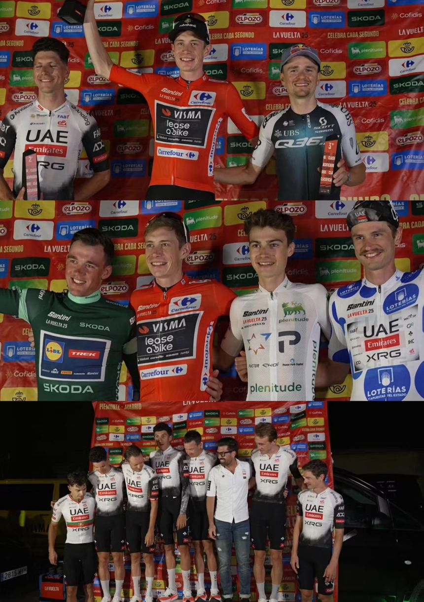 Jonas Vingegaard recebeu a camisola vermelha, da classificação geral, enquanto Mads Pedersen (camisola verde - pontos), Jay Vine (camisola da montanha) e Matthew Riccitello (camisola branca - juventude) rambém foram distinguidos, assim como toda a equipa da UAE Emirates, de João Almeida e Ivo Oliveira, que venceu a classificação por equipas.