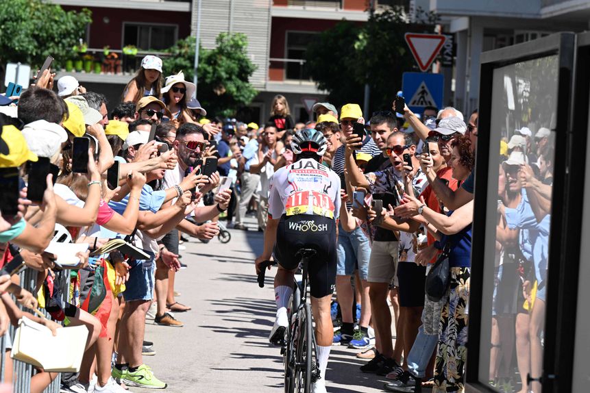 😜 ¡Parece que 🇵🇹 Joao Almeida - @TeamEmiratesUAE tiene algunos fans por Cascais! Hoy la etapa pasa por Caldas da Rainha, su ciudad. #LaVuelta24 pic.twitter.com/gToKQKDyD6