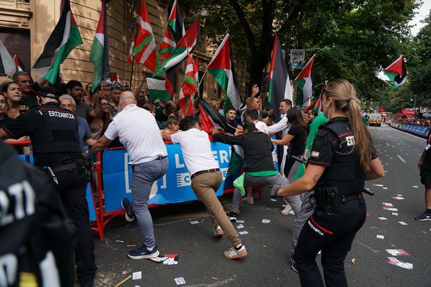 Manifestantes pró-Palestina tentaram invadir a zona de meta da 11.ª etapa da Vuelta em Bilbau