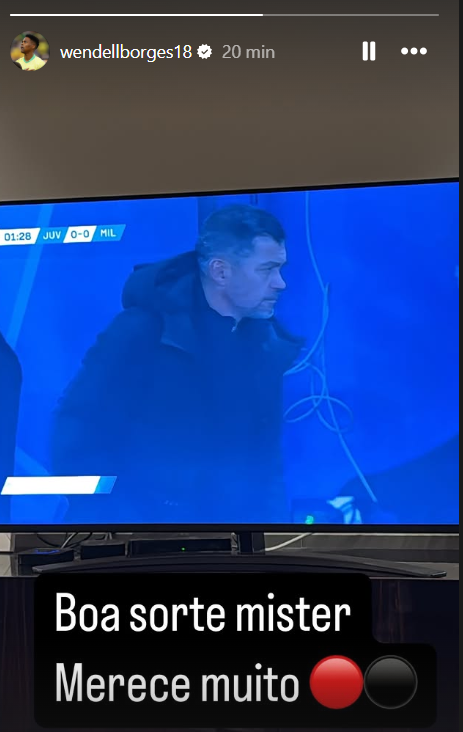 Enquanto pairavam as dúvidas em relação à conclusão do encontro entre Nacional e FC Porto devido ao nevoeiro – partida acabou por ser adiada –, Wendell mostrava-se, nas redes sociais, atento ao… Milan na estreia de Sérgio Conceição.