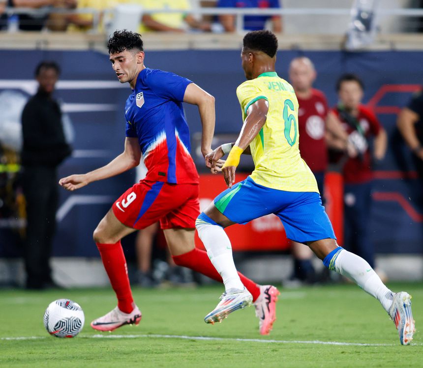Rodrygo marcou para a seleção brasileira aos 17, assistido por Raphinha, e Pulisic empatou para os norte-americanos aos 26 minutos, de livre direto.