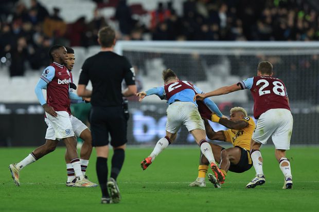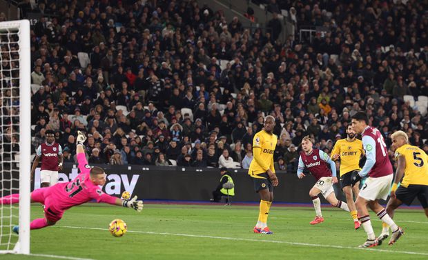 Com Nélson Semedo e Toti Gomes a titulares, o Wolverhampton quase só defendeu durante a 1.ª parte, conseguindo, ainda assim, manter o nulo até ao intervalo. Mas os golos surgiram na 2.ª parte: canto batido por Jarrod Bowen e Tomás Soucek (54’) a cabecear muito bem ao segundo poste, sem dar hipóteses de defesa a Sam Johnstone (que tirou o lugar de titular a José Sá). O checo levantou depois nove dedos, em homenagem ao n.º 9 que Michail Antonio usa na camisola.