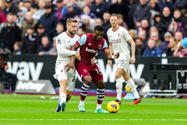 43' - Cartão amarelo para Kudus por falta sobre Luke Shaw.