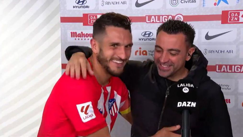 Grande momento entre Xavi Hernández, treinador do Barcelona, e Koke, jogador do Atlético Madrid, depois da vitória dos catalães por 3-0 na capital espanhola.