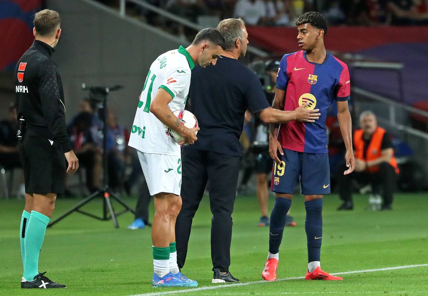 A ganhar por três golos no terreno do Alavés, Hansi Flick substituiu Lamine Yamal por Ansu Fati, ao minuto 67, e o jovem de 17 anos do Barcelona saiu visivelmente irritado, mas, aparentemente, não com o seu treinador.