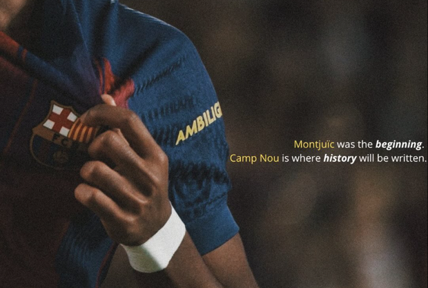 «Montjuic foi o início, Camp Nou é onde a história será escrita» foi a mensagem partilhada juntamente com uma foto do extremo do Barcelona a beijar o símbolo.