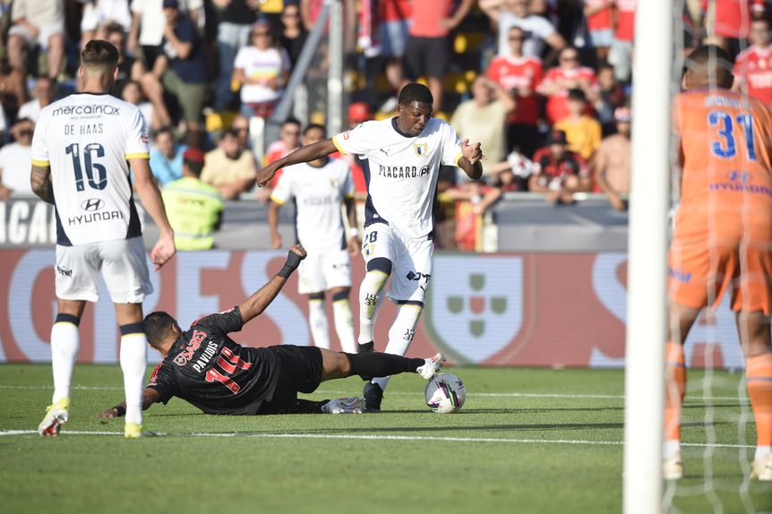 Zaydou, médio do Famalicão, no jogo com o Benfica (Foto: Grafislab)