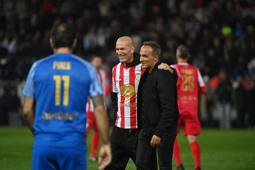 Impedido de jogar, Zizou passou o encontro a dar conselhos a jogadores como Dimitri Payet, David Ginola ou Jean-Pierre Papin.